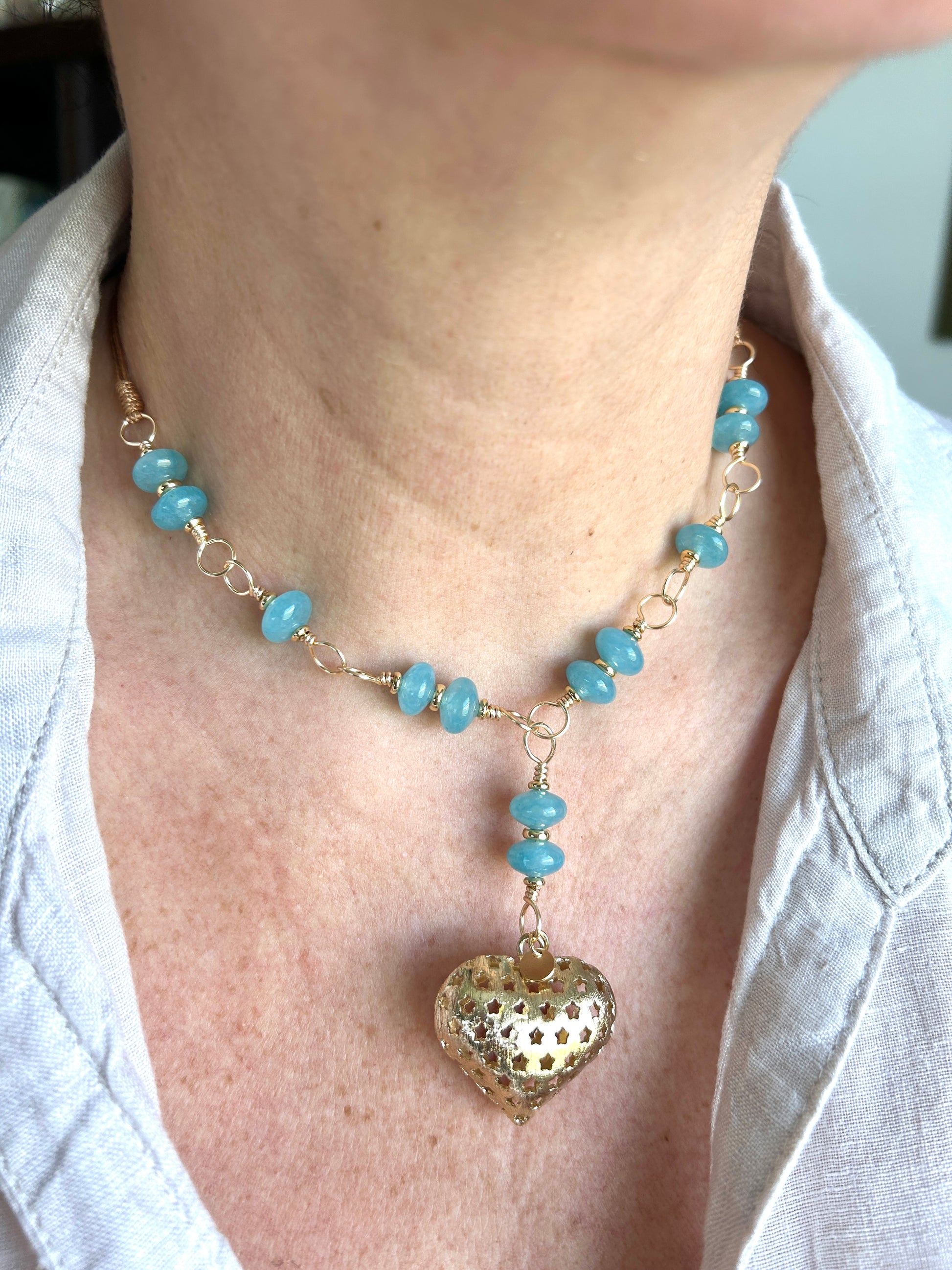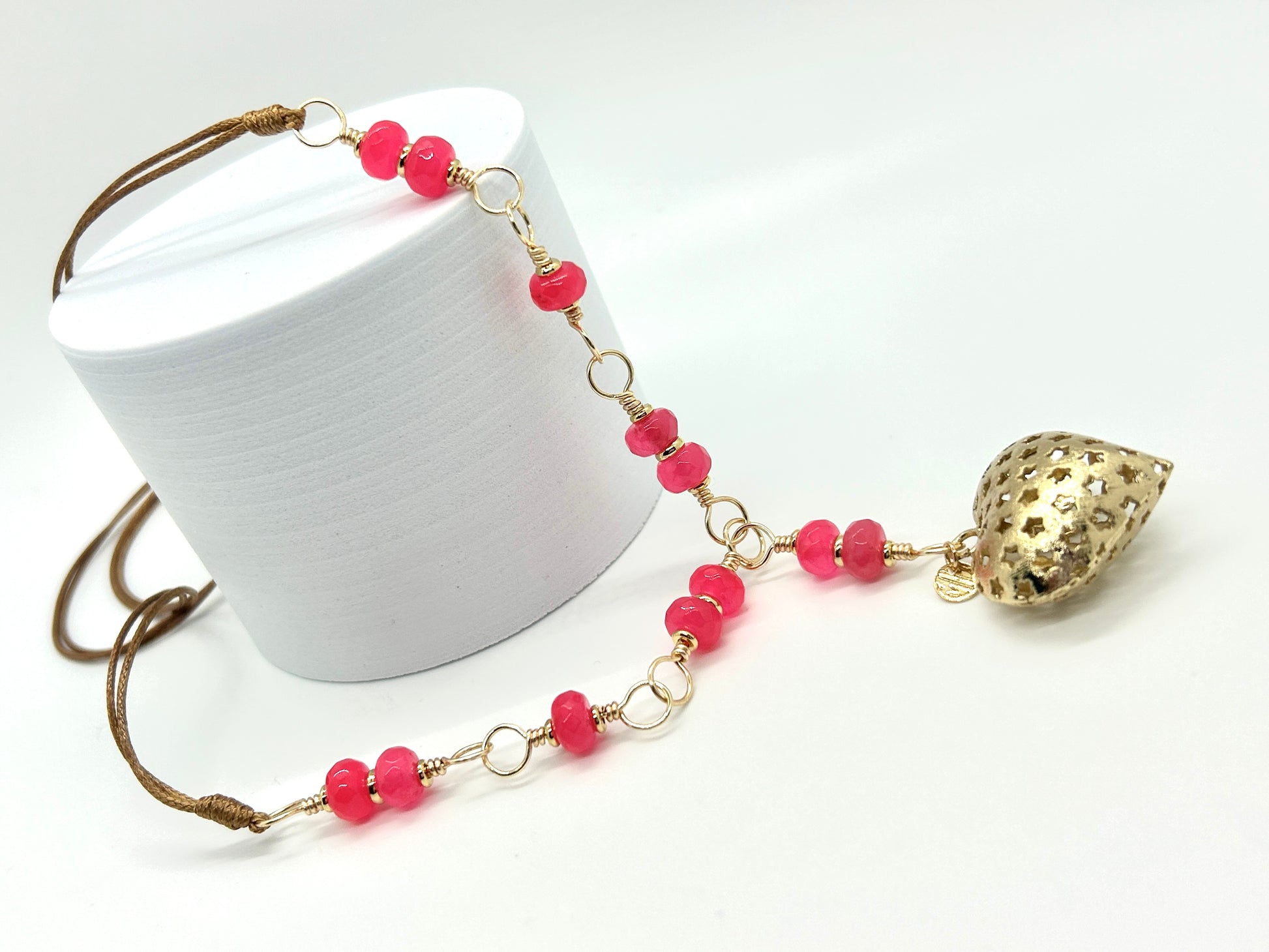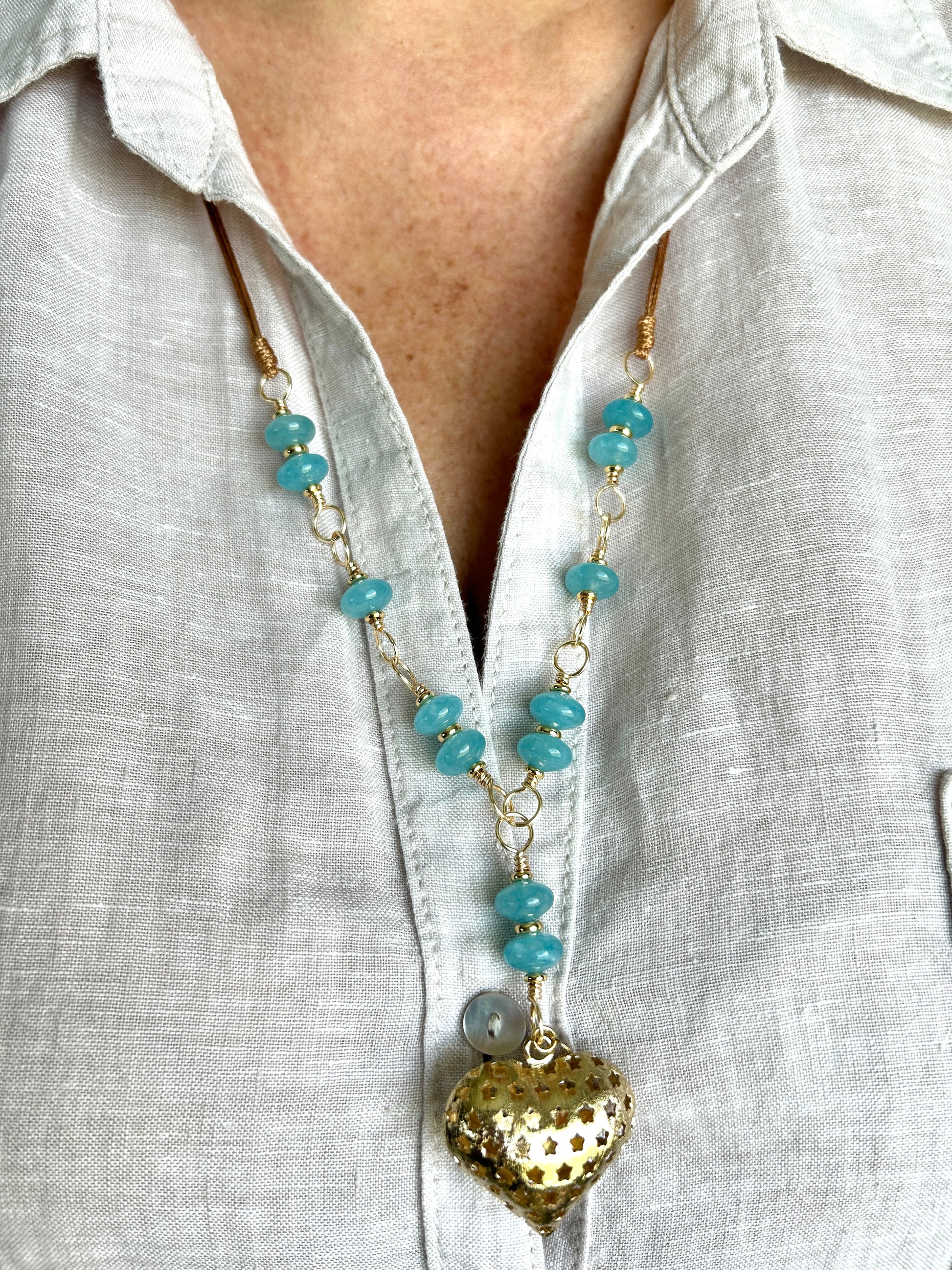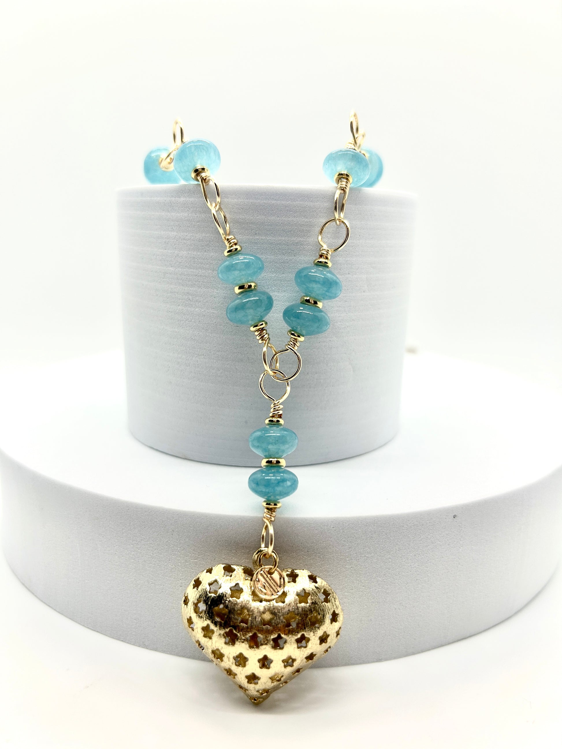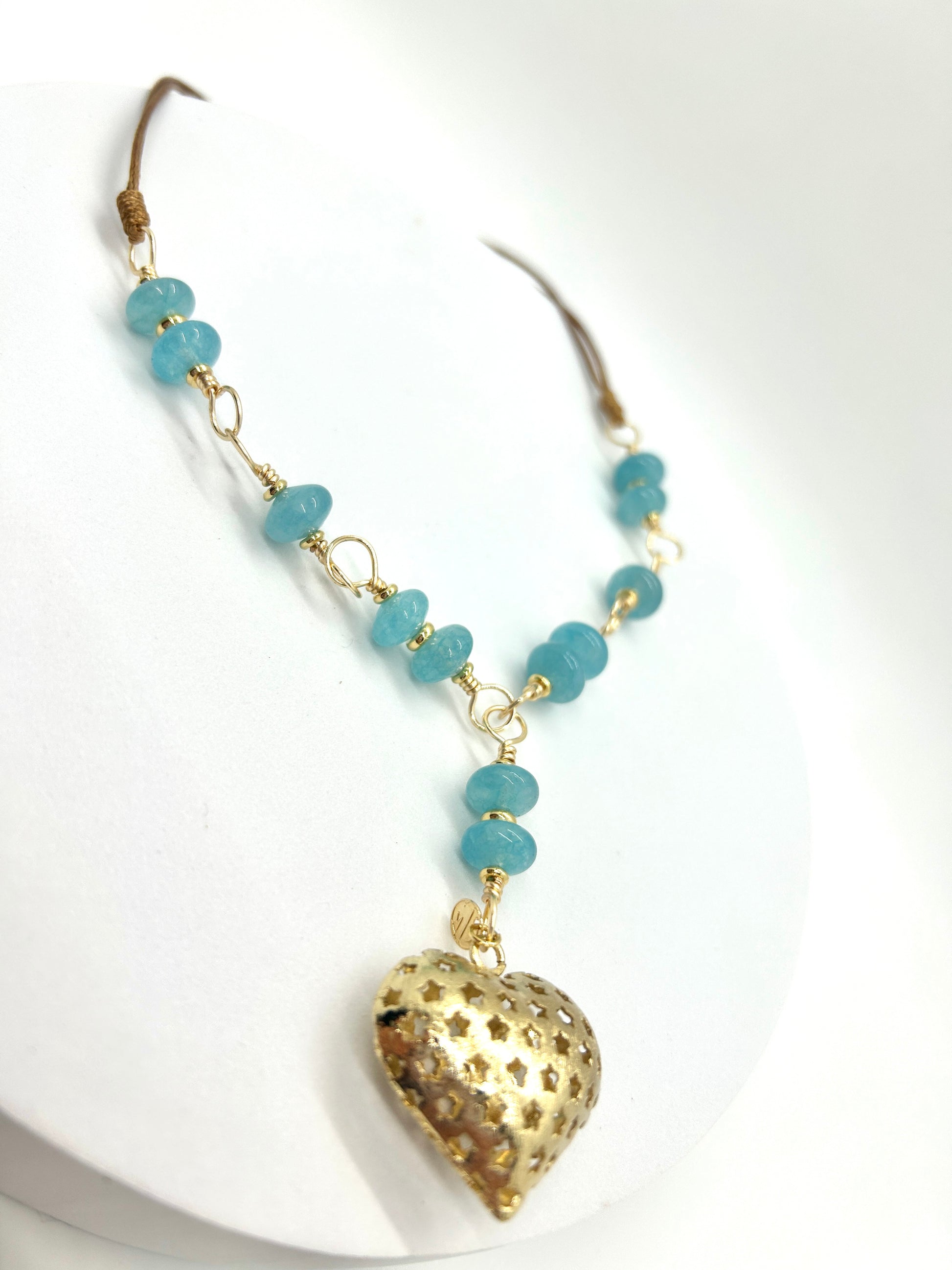 Collar delicado, elegante y versátil, elaborado con hilo de piel de serpiente, alambre de gold plated AAA 18K hipoalergénico y piedras semipreciosas. Aguamarinas ó Agatas. Ajustable